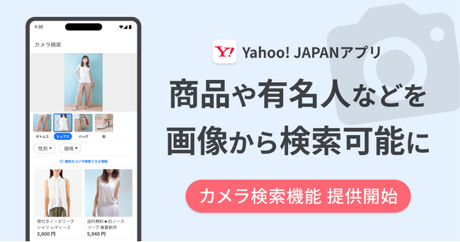 LINEヤフー株式会社(以下、LINEヤフー)が提供する「Yahoo! JAPAN」アプリ(iOS版、Android版)は、文字入力が不要で、画像から似ている商品や人物などを検索できる「カメラ検索機能」の提供を開始しました。