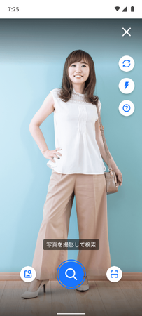 カメラ検索機能では、自分で撮影した画像や端末に保存してある画像を使用して、商品や有名人、類似画像を文字入力なしで検索できます。