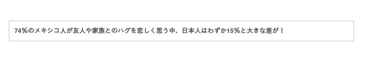 74%のメキシコ人がハグを恋しいと回答した一方、日本人はアジアの地域の中で最も低く、わずか15%という結果でした。