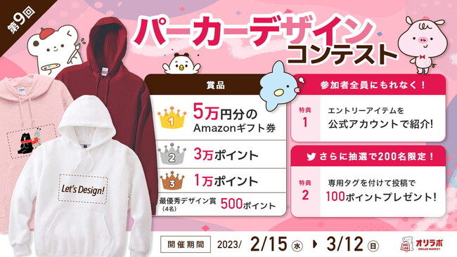 オリジナルラボ株式会社(本社:東京都渋谷区)は、オリジナルグッズ作成・販売サービス「オリラボマーケット」(URL : https://market.orilab.jp/ )にてパーカーデザインコンテストを実施します。