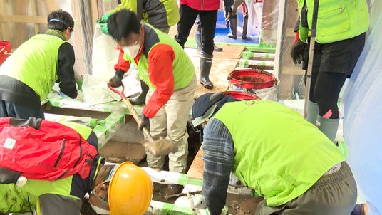 ボランティアによる9月豪雨の被災住宅から泥の掻き出し作業(輪島市)