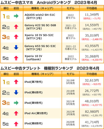 株式会社ウェイブダッシュ(本社:東京都千代田区、代表取締役 河野 由紀)が運営するフリーマーケットサイト「ムスビー」(https://www.musbi.net/) の2023年4月の中古スマホ・中古タブレットランキングを発表いたします。