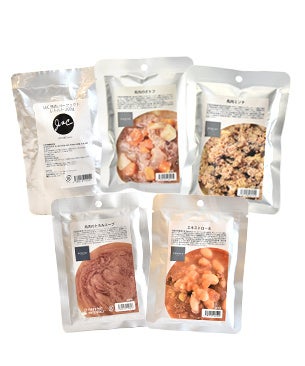 馬肉を使ったトッピング5種を集めたセットです。水分補給に便利なスープタイプから具沢山のもの、肉感のあるレトルトなど種類豊富なトッピングの中から厳選したセットとなっております。通常価格2,648円から25.2%オフの1,980円でのご提供です。