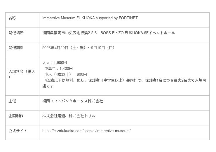 福岡PayPayドーム横のBOSS E・ZO FUKUOKA 6Fにて、「Immersive Museum FUKUOKA(イマーシブミュージアムフクオカ)supported by FORTINET」を4月29日(土・祝)より開催します!モネをはじめとする「印象派」の芸術作品の世界へ没入する新感覚体験型ミュージアムを、公式アンバサダーである百田夏菜子さんが一足先に体験しました。4月26日(水)に百田さんが出席した「Immersive Museum FUKUOKA supported by FORTINET」メディア向け発表会の様子をレポートします。