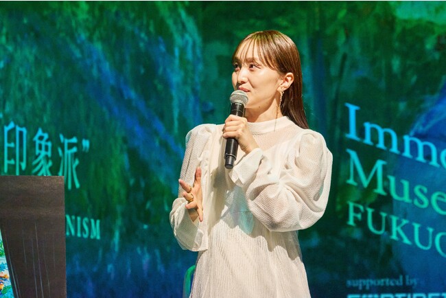 また、「普段アートの番組をやっているが、アートは遠い存在に感じる人もいると思うのでそんな人も含めて、絵が好きな方、たくさんの人に素晴らしい作品を伝えたいので、アンバサダーとして魅力を伝えていきたいです!初めての方も、すごく来場しやすいミュージアムだと思うので、イマーシブミュージアムを通してアートに興味を持ってもらえると嬉しいです。」と魅力を語りました。