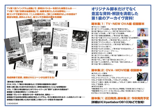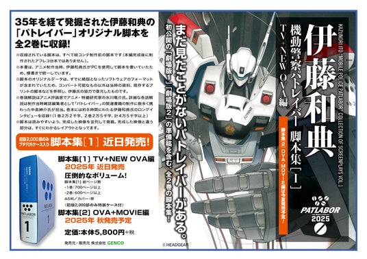 HEADGEAR+展で大好評の伊藤和典氏の脚本集[1]TV+NEWOVA編、高田明美氏の後藤隊長の描きおろしイラストの扇子も引き続き販売いたします。