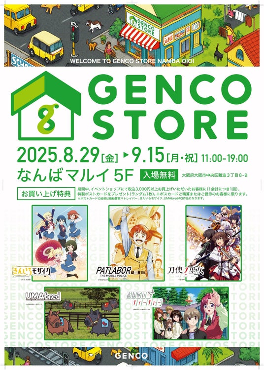 株式会社ジェンコ(東京都港区)は、なんばマルイ 5F イベントスペースにて当社プロデュース作品のグッズを一挙に集めた物販イベントをなんばマルイにて2025年8月29日(金)より開催いたします。