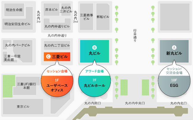 会場:丸ビル7階「丸ビルホール」、新丸ビル10階「EGG」、三菱ビル1階 ユーザベースオフィス
