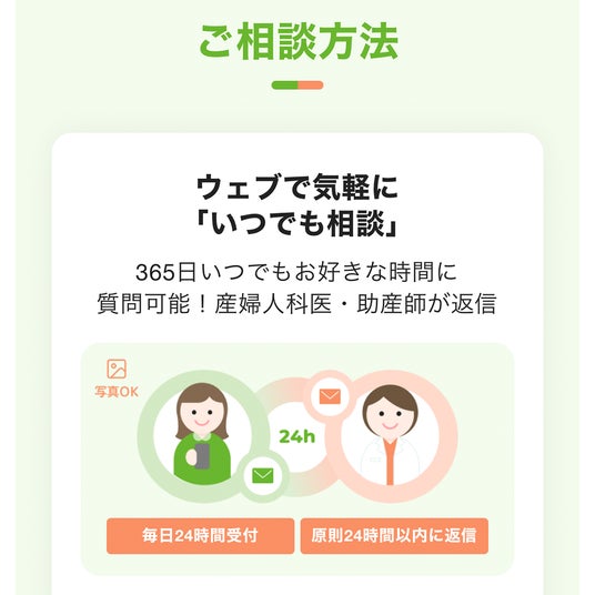 産婦人科オンライン(https://obstetrics.jp/)、小児科オンライン(https://syounika.jp/)は、産婦人科医、小児科医、助産師にスマホから相談できるサービスです。