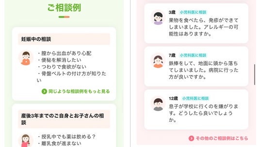 『産婦人科オンライン』では不妊治療のご相談や女性特有の健康の悩みなどを抱えていらっしゃる方も増えているため、婦人科関連の相談例を充実させました。『小児科オンライン』では、より多様な年齢のお子さんの相談例を掲載いたしました。これまでは乳児の相談例を中心に掲載しておりましたが、当サービスは基本的に0~15歳のお子さんを対象としているため、幅広い年齢のお子さんに対応した相談例を充実させました。