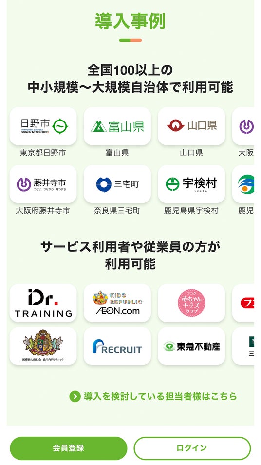 現在100以上の法人・自治体でご利用に導入いただいているため、導入事例を現状に則した即したものに更新いたしました。