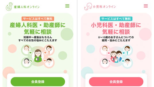 『産婦人科オンライン(https://obstetrics.jp/)』『小児科オンライン(https://syounika.jp/)』は、産婦人科医・助産師・小児科医にスマホから相談できるサービスです。