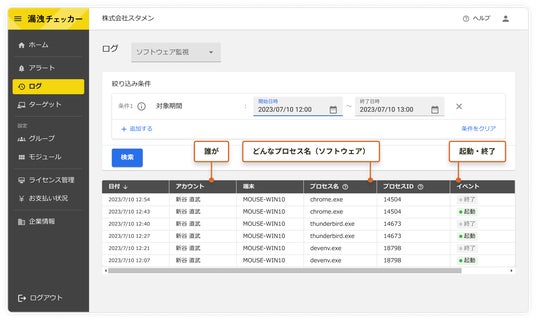 株式会社スタメン(東京本社:東京都千代田区、代表取締役CEO:大西泰平)は、クラウド型IT資産管理・操作ログ管理ツール「漏洩チェッカー」に新機能「ソフトウェア監視」をリリースしたことをお知らせいたします。