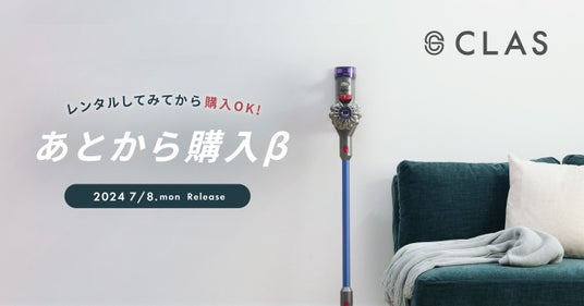 認知度No.1(※1)の家具と家電のレンタル・サブスク「CLAS(クラス)」を運営する、持たない、捨てない社会をつくる株式会社クラス(本社:東京都目黒区、代表取締役社長:久保 裕丈)は、お客さまのより自由で軽やかな暮らしの選択肢を広げるため、ご要望の多かった、レンタル中の商品をあとから購入できるサービスのβ版を2024年7月8日より提供開始いたします。(※一部、対象外の商品あり)