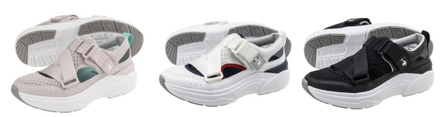 スニーカーのソールをそのまま使用した厚底ソールのクッション性と、ベルトで調整できるフィット感で、夏に向けて増えるキャンプやバーベキュー、野外フェスなどのアウトドアアクティビティや、歩くことの多いお出かけにもぴったり。また、アッパー部分にはメッシュ素材を、素肌に触れるライニング部分には接触涼感素材を使用、また、消臭機能のあるインソールを採用しているので、夏の足元を快適にします。