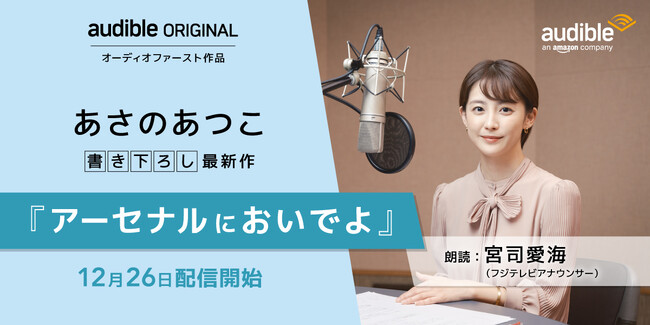 世界最大級のオーディオブックおよび音声コンテンツ制作・配信サービスであるAmazon オーディブル(以下、Audible)は、12月26日からあさのあつこさんの最新書き下ろし長編『アーセナルにおいでよ』をフジテレビアナウンサー宮司愛海さんの朗読で配信予定です。本作はAudibleオリジナルタイトルの「オーディオファースト作品」で、最初に「オーディオ」でリリースした後、2024年初夏に水鈴社より書籍として出版される予定です。Audibleはこれまでに出版社との共同プロジェクトとして8作品の「オーディオファースト作品」を配信しており、本作は2023年を締めくくる作品となります。