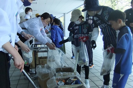 総勢222名が参加し、イベントオリジナルの軍手を身につけてベスト電器スタジアム周辺のごみ拾いを実施。参加者からは「ごみのポイ捨てをなくして、福岡の森林や自然を大切にしていきたい」などの声をいただき、参加企業からは「地元企業として、福岡の環境問題に目を向ける良い機会になった」などのコメントをいただきました。