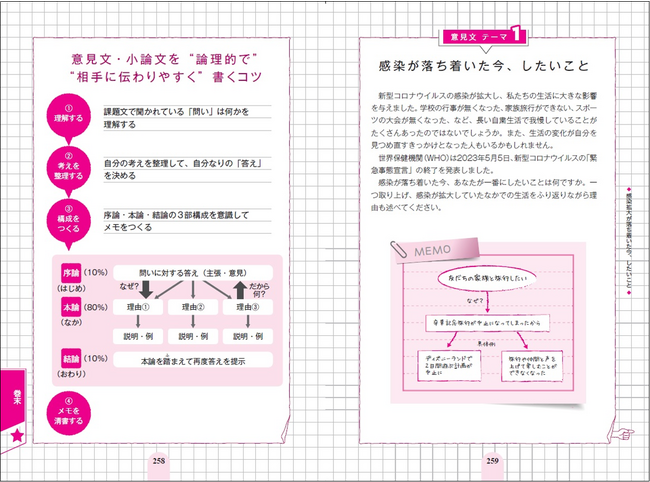 「高齢者の詐欺被害を防ぐには」「難民問題について」などの時事問題を題材とした意見文・小論文の練習ができます。7つの例題と解答例つきで、現代の諸問題を「論じる」力がつきます。
