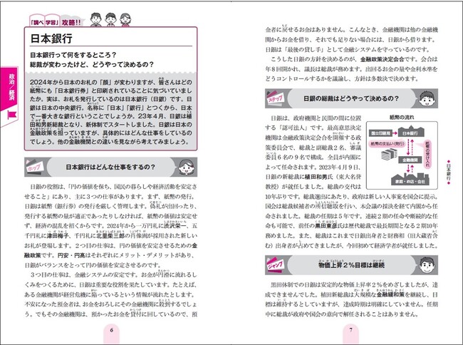 授業の一環で「調べ学習」をする学生の方も多いのではないでしょうか。本書の「調べ学習攻略!!」のページでは、現代の諸問題が「どのような問題なのか」「なぜ起きているのか」「これからどうなるのか」を3ステップでまとめています。