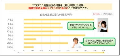その結果、子どもたちの行動の変化もみられ、調査対象者全員の自己肯定感がプラスに転じたことが確認できました(図3)。