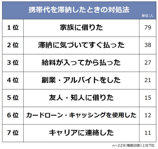 携帯代を滞納したときの対処法1位は「家族に借りた」