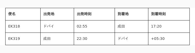 エミレーツ航空の成田発着便は12月20日以降、以下のウィンタースケジュールに沿って運航予定です。
