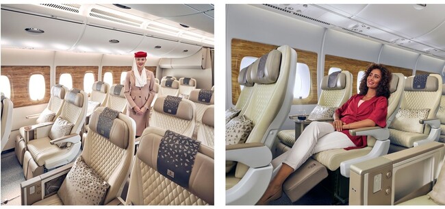 東京発着便をご利用のお客様には、ゆったりとしたスペースの座席とワンランク上のお食事で、大きな話題を呼んでいるエミレーツ航空のプレミアム・エコノミーを体験する新たな選択肢が提供されることになります。改修されたA380型機はファーストクラスとビジネスクラスの客室に従来よりも明るい色調が取り入れられるなど、内装も全面的に刷新されています。