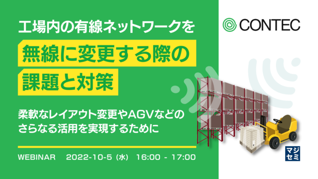 マジセミ株式会社は工場内の有線ネットワークを無線に変更する際の課題というテーマのウェビナーを開催します。