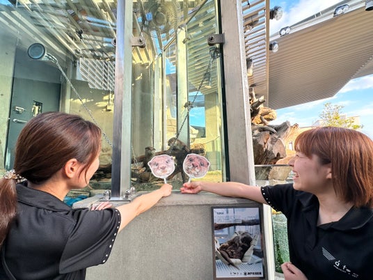 AQUARIUM×ART atoa(神戸市中央区、以下アトア)では、コツメカワウソの「お浜」と「げんげん」のきょとん顔が可愛い『コツメカワウソのうちわ(2種)』が館内限定グッズとして新登場!2匹のどこかきょとんとしたような表情は飼育員イチオシ!