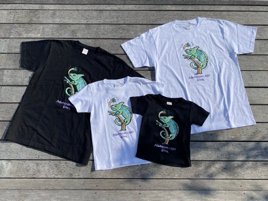 さらに、親子でペアルックとして着られるカメレオンTシャツも新商品として1階ミュージアムショップで販売中です。
