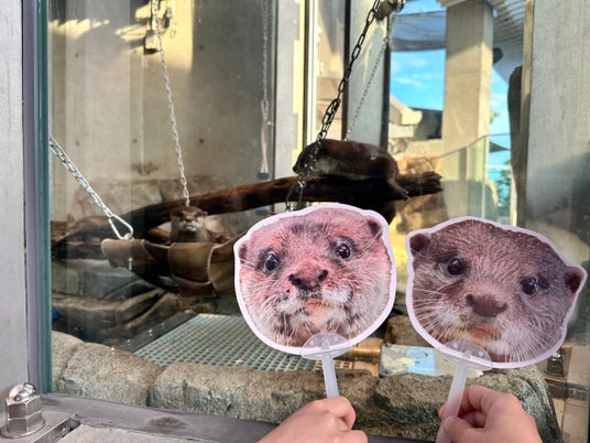 カワウソとうちわを見比べて楽しめます