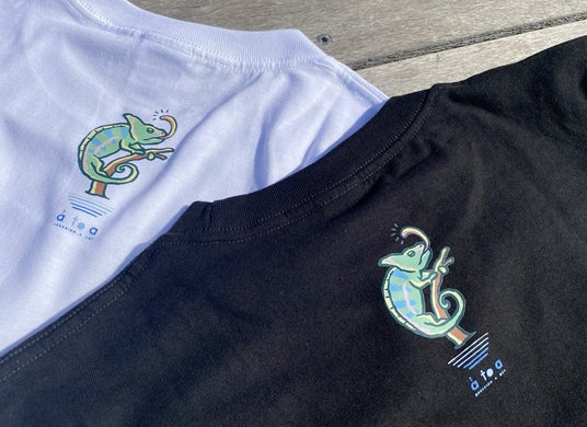 アトアで人気のカメレオンが描かれたオリジナルTシャツが新登場!背面には、前面と少し様子が異なるカメレオンがデザインされているのがポイントです。キッズから大人まで着られるサイズ展開なので、親子でお揃いにするのもおすすめです!