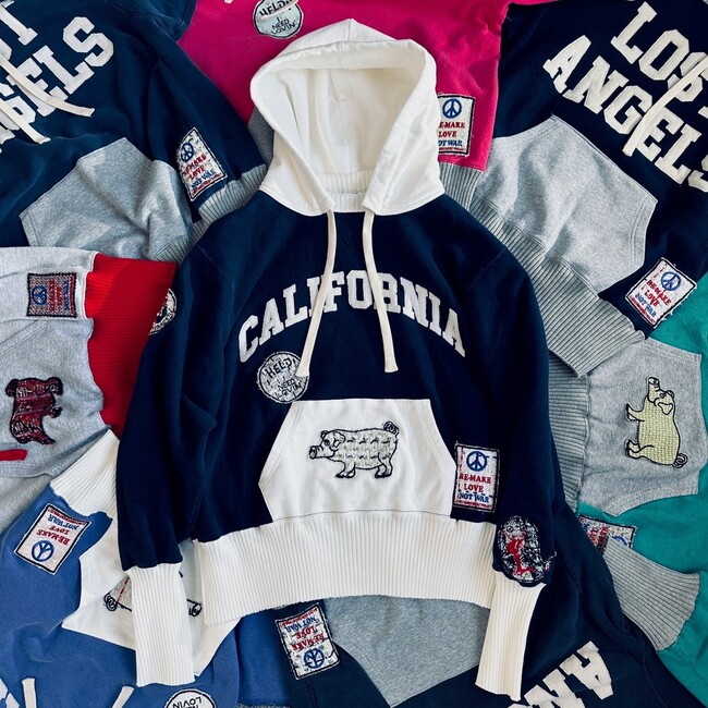 イベントでは日本発のブランド「Perfect rib(R)」とのコラボレーションアイテムとして、ビンテージスウェットを解体しパッチカスタムを施した世界で1点だけのスペシャルピースのほかPOPUPイベント限定のアイテムを展開。「A LOVE MOVEMENT」からは大久保氏とALMチーム澤田友美氏によるカスタムサービスに加えて新作パッチやカシミヤセーターを販売いたします。