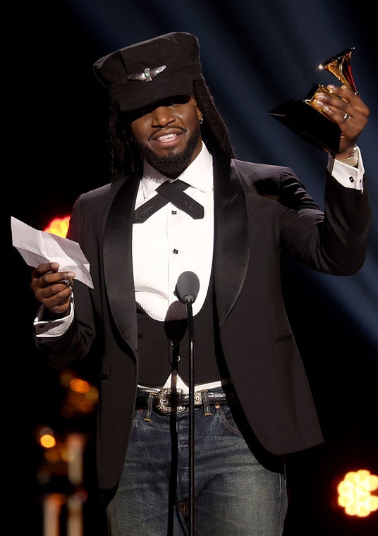 シャブージー(Shaboozey)は、2月1日(日)のグラミー賞プレミア・セレモニーで、ジェリー・ロール(Jelly Roll)と共に楽曲「Amen」によって〈最優秀カントリー・デュオ/グループ・パフォーマンス賞〉を受賞し、キャリア初のグラミー受賞を果たしました。レッドカーペットおよび受賞スピーチの際の両方で、新作『ピアジェ ポロ 79 ツートーン』を着用しました。