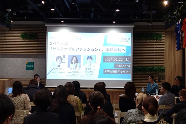 FRaUの関氏、WWDJAPANの向氏とともに“ファッションのサステナビリティ”を紹介