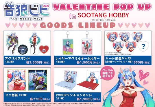 株式会社ピアラ(本社:東京都渋谷区、代表:飛鳥貴雄、以下「当社」)の連結子会社で、VTuberのマネジメントやアーティストのファンクラブ運営などを行う株式会社サイバースター (本社:東京都渋谷区、代表:飛鳥貴雄、(以下「サイバースター」)は、同社がマネジメントを手掛けるVTuber『音狼ビビ(ねろうびび)』のポップアップイベント『音狼ビビ(ハート)VALENTINE POP UP in SOOTANG HOBBY AKIHABARA』を、株式会社SOOTANG HOBBY(本社:東京都中央区、代表取締役:邢一)が運営する実店舗・SOOTANG HOBBY AKIHABARA(以下「スータンホビー秋葉原」)にて開催することをお知らせします。