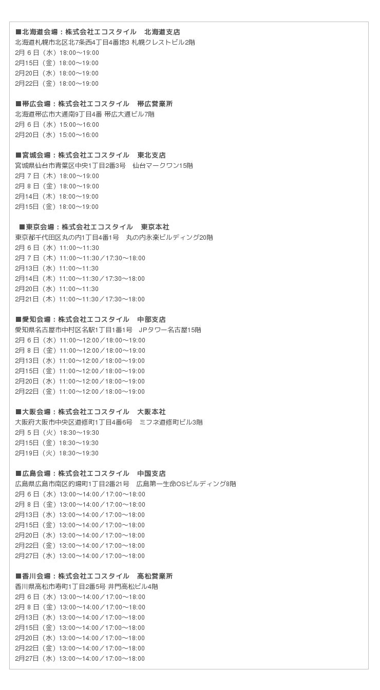 *受付はセミナー開始時間の30分前から開始いたします。*説明会は完全予約制となっており、各回定員になり次第予約を締め切らせていただきます。