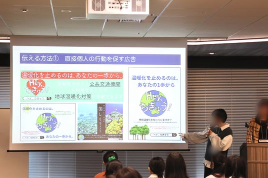 ワークショップの締め括りとして提示されたのは「地球温暖化をもっと身近に感じてもらうには?」をテーマに、より具体的なアイデアを、大人に対して本気でプレゼンテーションしようというミッションです。