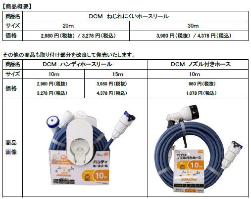 全国でホームセンター事業を展開するDCM株式会社( 東京都品川区、代表取締役社長: 石黒靖規以下、DCM)は、現行の蛇口への取り付け金具を変更し、簡単に脱着ができるようになった「DCM ねじれにくいホースリール」を 2022 年 2月 25 日 (金) より、全国のDCMグループ店舗(DCMカーマ・DCMダイキ・DCMホーマック・DCMサンワ・DCMくろがねや及びケーヨー デイツー、一部店舗を除く)にてリニューアル発売します。