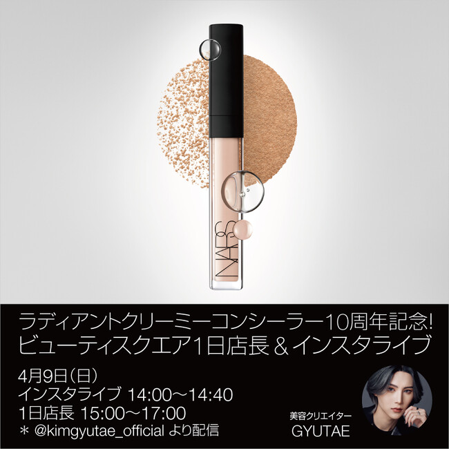 クオリティが高すぎるドラァグクイーンメイクが話題、プロレベルのメイクテクニックとコスメへの造詣の深さで、男女問わず大きな支持を集めている人気インフルエンサーのGYUTEさんが、WITH原宿 資生堂ビューティ・スクエア内NARSの1日店長として、お客さまお一人おひとりに、なりたい美肌へのアドバイス会を実施します。さらに生インスタライブ配信も! インスタライブは自由参加制、アドバイス会は事前予約制となります。