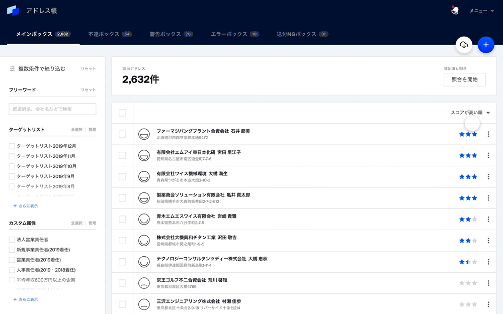 これにより、各企業はすでに保有している数万件にも及ぶ宛先リストをアップロードするだけで、最新の企業情報との差分を特定し、最新情報へ変換します。