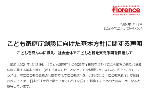 フローレンスの「こども家庭庁八策」