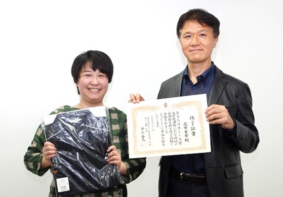 今回の卒業生の中で最年長。修了証書を手にし、同期生からの拍手に満面の笑みで応えていました。