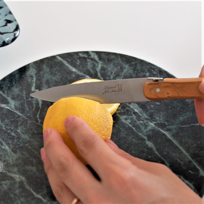 刃渡り約8.5センチの使いやすいサイズで果物の皮むきやカットはもちろん、お弁当のおかず調理など小さな食材にベストマッチのライヨール、 プレーンエッジのフルタング構造はどんな食材にも対応し、丈夫なつくり。 全長約21センチで一般的なテーブルナイフとほぼ同じ長さです、ステーキ用ナイフやテーブルナイフとしてもご使用いただけます。