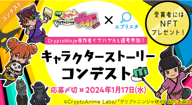 小説投稿サービス「エブリスタ」にて、『忍ばない!クリプトニンジャ咲耶×エブリスタ キャラクターストーリーコンテスト』を実施。原作者イケハヤさんなどが審査。受賞者には本作のNFTなどが授与されます。