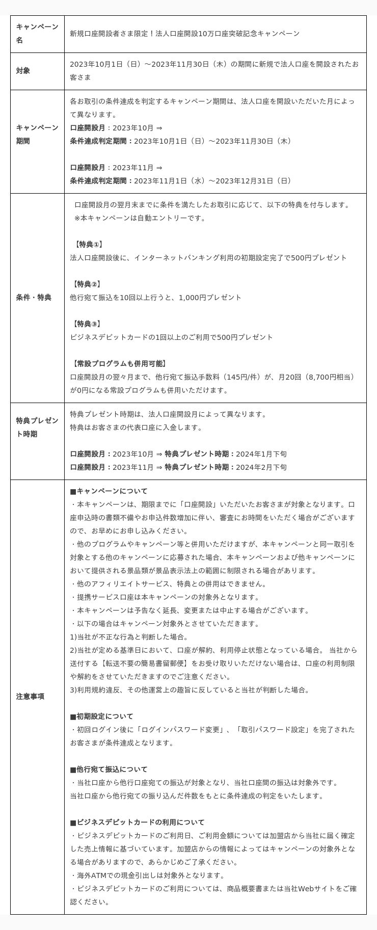 各種キャンペーンページhttps://gmo-aozora.com/business/campaign/