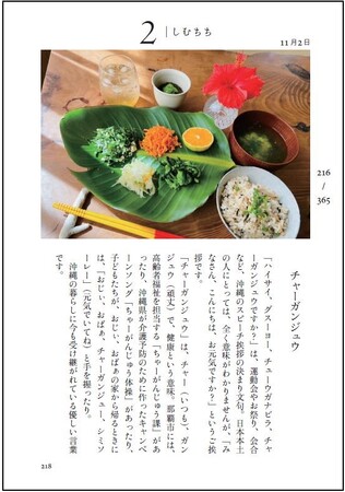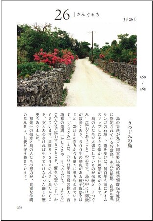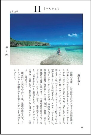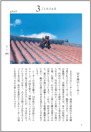 本書は、沖縄へ移住した著者が、本土とは異なる生活の何気ない習慣、季節のできごと、大切にしている価値観まで、ささやかな日常を365日分、色彩豊かな写真とエピソードで綴ったエッセイ集です。旅をするだけでは見えてこない沖縄の日常を垣間見ることで、ありのままの沖縄を味わうことができます。心やすらぐ南の島の毎日には、遠く離れた地で暮らす私たちへの「幸せに生きるヒント」がたくさん詰まっています。