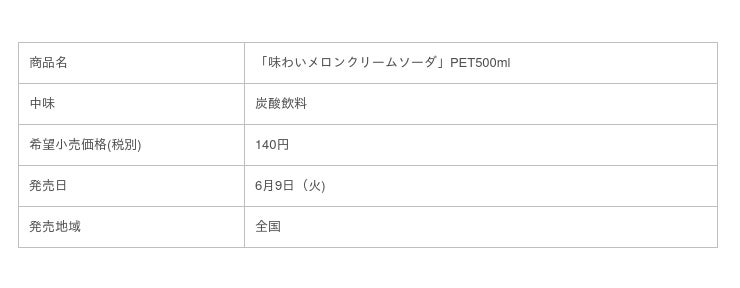 「味わいメロンクリームソーダ」は、喫茶店やカフェを中心にお客様から根強い人気の定番メニュー”メロンクリームソーダ”の味わいが楽しめる乳性炭酸飲料です。2015年の発売以降、多くのお客様にご好評いただいており、本年は定番メニューとしてより多くのお客様に楽しんでもらえるよう、炭酸飲料の需要の高い夏に向けてリニューアルします。中味は昨年同様ご好評をいただいたバニラアイスクリームを使用※するとともに、甘く熟してから収穫し搾った“完熟メロン果汁”を使用しています。完熟果汁とバニラアイスクリームがとけあう、喫茶店で出てくるようなまろやかで本格的なメロンクリームソーダの味わいが楽しめます。