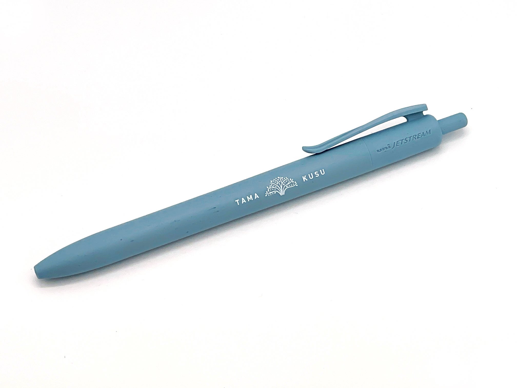 海洋プラスチックごみと使い捨てコンタクトレンズの空ケースを再生利用した、環境にやさしいボールペン「ジェットストリーム 海洋プラスチック」に「たまくすの木」のイラストをデザインしました。