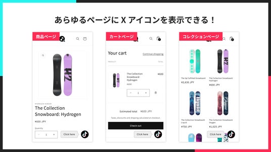 商品ページからブログまで、全ページでTikTok誘導が可能